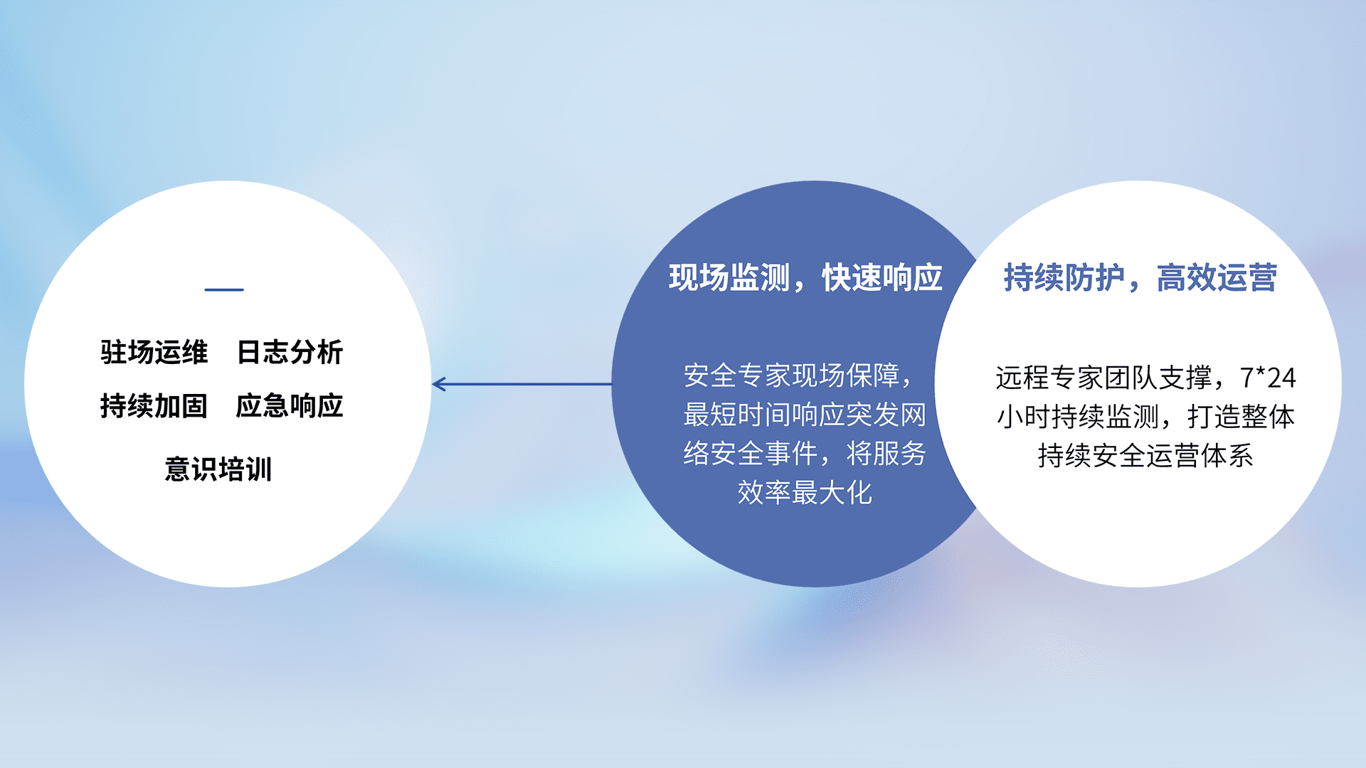 7X24小时持续监测安全事件,保持安全策略有效性,降低资产脆弱性风险,,,精准拦截黑客攻击,,,,减少被黑客利用的机会,,,第一时间遏制,,,,降低损失。。。。